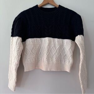 Club Monaco Structured Cable Crew Knit Sweater Black White Wool Size Small