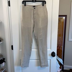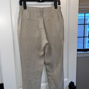 Linen pants with a slim fit and an internal drawstring for comfort. They have a textured micro stripe pattern and they are absolutely amazing and comfortable. Perfect for the summer to dress up and down!