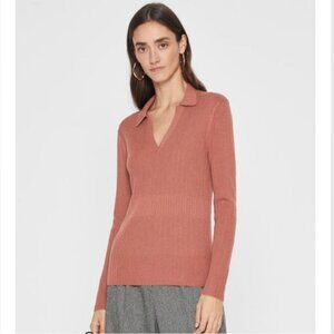 Club Monaco Sweater Womens Small Cedar Brown Wool Blend Preppy Wide Rib Pullover