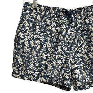 Club Monaco Swim Trunks Men's Size M Floral Print Blue White Beige Elastic Waist Summer Beach Vacation