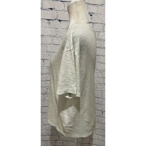 This Club Monaco t-shirt in size S features a stylish green and white striped pattern, perfect for a casual or travel outfit in the spring or summer seasons. The soft fabric blend of polyester and cotton ensures comfort, while the pullover closure and crew neck neckline provide a classic and easy-to-wear style. With its short sleeves and basic design, this t-shirt is a versatile addition to any woman's wardrobe. 21 inches pit to pit and 23 inches long. Smoke free home.