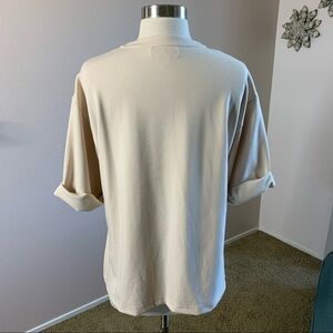 Club Monaco new without tags Boxy Stretchy Comfortable TShirt With Rolled Up Short Sleeves in Cream Off White Color, Appropriate for Spring Summer, Vacation Casual Comfort Wear