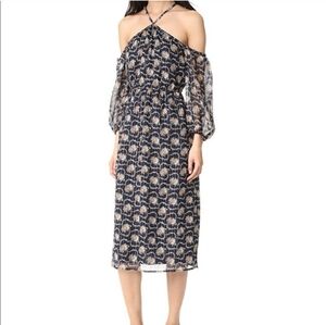 Off-shoulder neckline with halter straps. Hook-and-eye