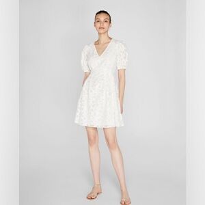 Club Monaco Textured Puff Sleeve V-Neck White Dress Size 10