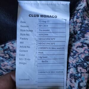 Club Monaco Tia Black Merino Wool Watercolor Silk Shirt Tail Hem Sweater sz S