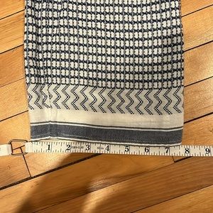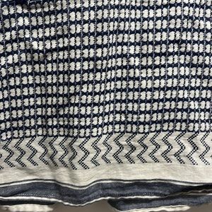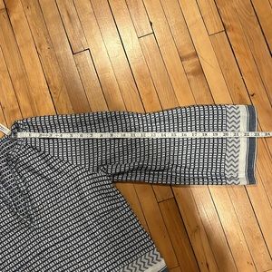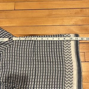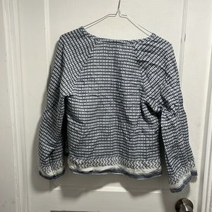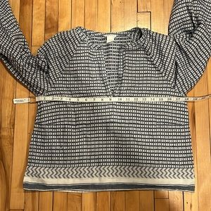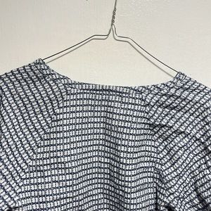 Club Monaco Blue and White Geometric Abstract Pattern Long Sleeve V Neck Top