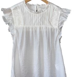 Club Monaco Top Women Size Small Ruffle Sleeve White Summer NWT *