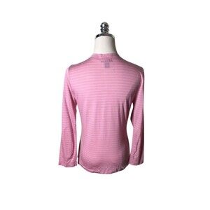 Club Monaco Top Women's Size Large Pink Stripes Long Sleeve V-Neck Tencel