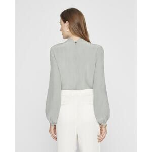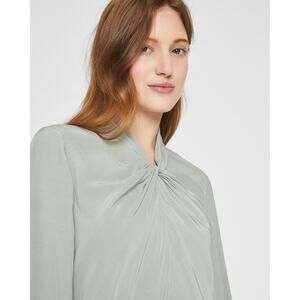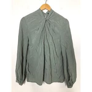 Club Monaco Twist Neck Top Satin Long Sleeve Blouse Iron Blue Small