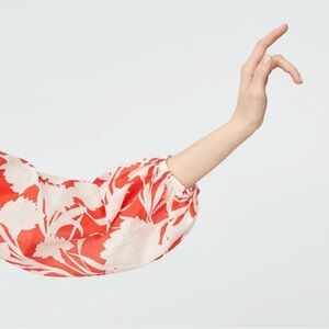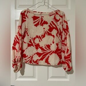 Club Monaco Valterra Silk Blend Floral Print Long Sleeve Rosette Blouse Size XS