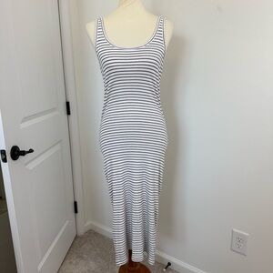 Club Monaco White Black Striped Tank Midi Dress Medium Summer Stretch Comfort
