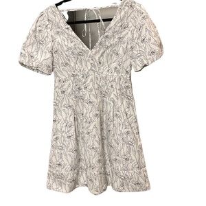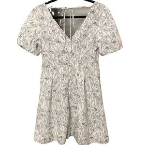 Club Monaco White Floral Printed Puff Sleeve Dress