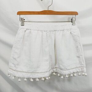 Club Monaco White Pom Trim Linen Elastic Waist Short Woven Pockets 00 (A-4)