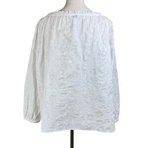 Club Monaco White Textured Long Sleeve Tie Neck Button Up Thin Unlined Blouse