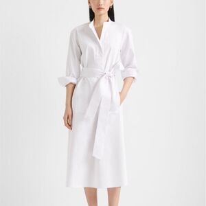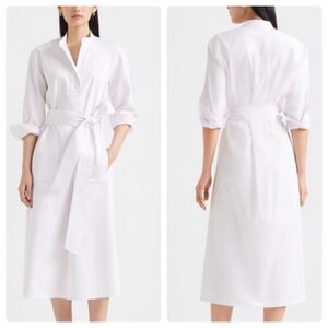 Club Monaco White Half Placket Midi Belted Shirt Dress | Size M