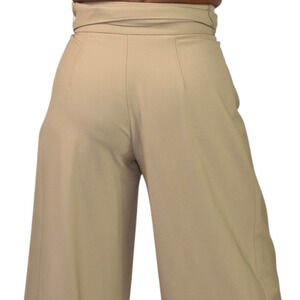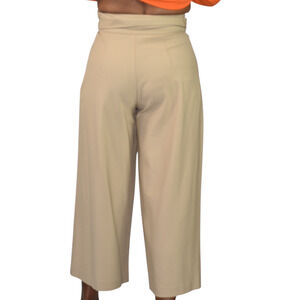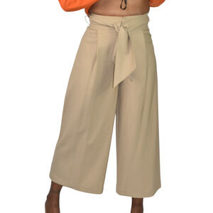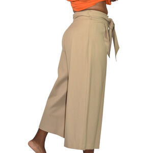 Club Monaco Wide Leg Crop Trousers Tan Tailored Pants Belted Flare Wool Khaki 0