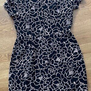 Club Monaco Willa dress in size 10. Very pretty blush floral pattern on black. In good condition -- the cut is so flattering and feminine.