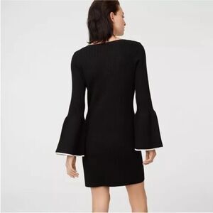 Soft Merino wool ribbed sweater dress. Pull on, boat neck, long sleeves white white trim
