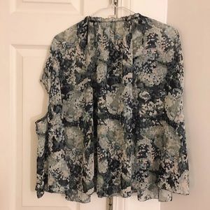 Club Monaco Women Keyhole Front Abstract Print Top /Navy Combo /Medium