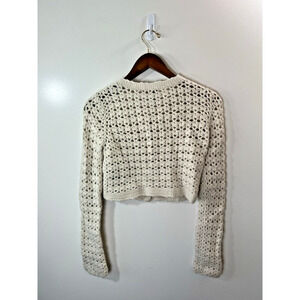 Club Monaco Women's Angora Wool Crochet Cropped Cardigan Size S/P Cream Cottage