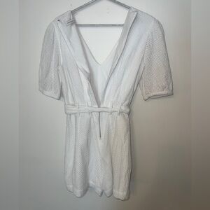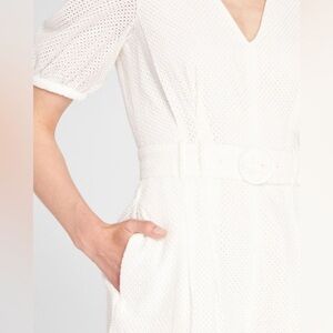 Club Monaco Womens Belted Puff Sleeve Eyelet Romper White size 4 - Bride/party
