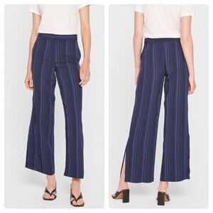 Club Monaco Women's Blue Striped Shiny Wide Rib Full Length Pants Size 2/4/6 NWT