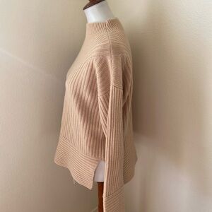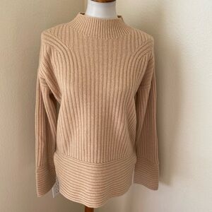 Club Monaco Women’s Cashmere Ribbed Mock Neck Sweater Beige Size M Knit Pullover