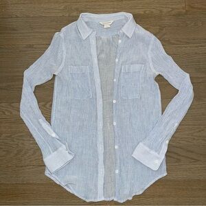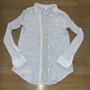 Club Monaco Women's Crinkle Texture Light Blue Button Down Shirt Size Small