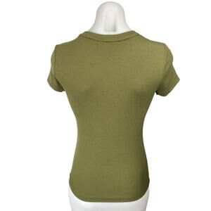 Club Monaco Women's Green Rib Knit Short Sleeve Crew Neck Stretch Tee T-Shirt Top Size S