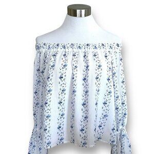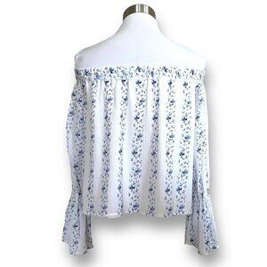 Club Monaco Womens Plumina Blouse XS Blue White Floral Silk Off Shoulder Boho