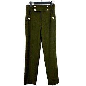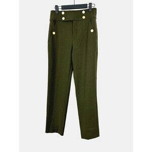Club Monaco Womens Size 0 Army Green Pants Gold Buttons Pockets Nautical U3