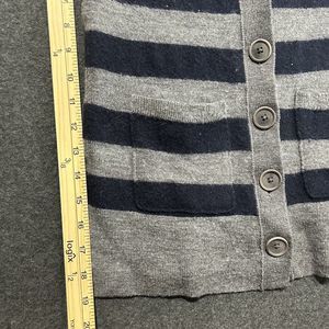 Club Monaco Women's Size: XS Gray Navy Blue Striped Wool Button Down Sweater