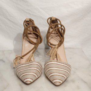 Club Monaco Womens Tan Striped Pointed Toe Tie Up Pump Stiletto Heels Size 6