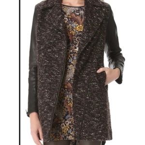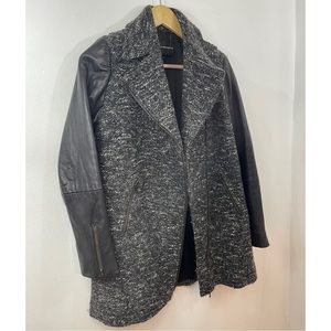 Club Monaco Women’s Tweeted Jacket Leather Sleeves Size: XS