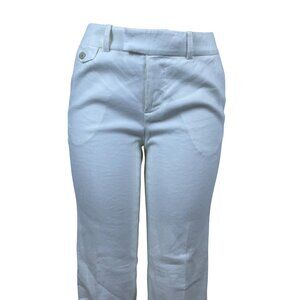 These Club Monaco wide-leg pants feature a lightweight blend of linen and viscose for breathability and comfort. The crisp white color gives them a clean, polished look, and the design includes belt loops, side button details, and back welt pockets. Perfectly tailored for versatility and new with tags, they’re an elegant choice for any wardrobe.