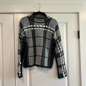 All orders ship within 1-3 business days. This women's longsleeve turtleneck sweater is made by Club Monaco. Color is grey and blue. Size is medium. Excellent condition. Fabric is 75% wool, 10% nylon, 9% polyester, 3% alpaca 1% elastane and 2% other. Make me an offer!