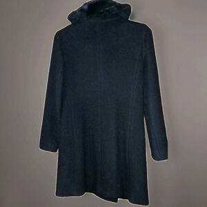 Club Monaco Womens Wool Pea Coat Faux Fur Collar Black XS Zip Mid-length Chic