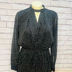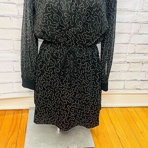 Club Monaco Womens Black Abstract Print Long Sleeve Mini Dress Size 0