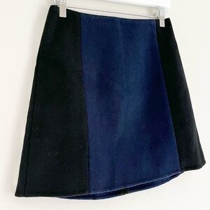 Club Monaco women’s wool blend color block skirt in blue and black. Size 4.