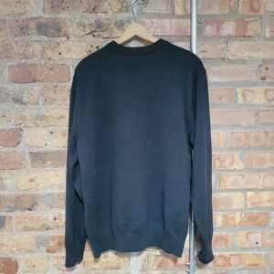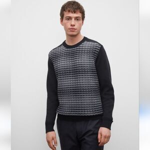 Club Monaco Wool Caviar Knit Textured Plaid Crewneck Black Gray Sweater Size L