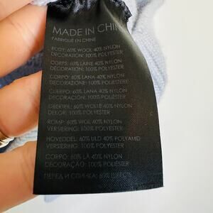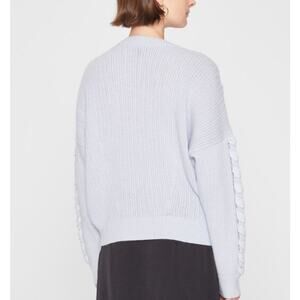 Club Monaco Woven Detail Sweater in Grey Dawn. Size small. In great pre-owned condition. Measurements are photographed. All the warmth and comfort of a knit sweater thanks to a wool-blend fabrication, but without sacrificing style. Tonal ribbons woven throughout produce an almost ethereal effect.