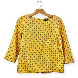 Club Monaco Yellow Silk and Wool Blend Textured Jacquard Blouse Size XS