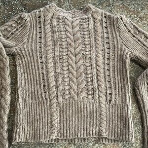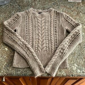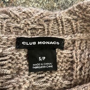 Club Monaco cable knit fisherman bobble cropped sweater merino wool mohair blend