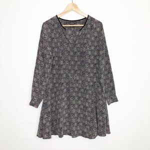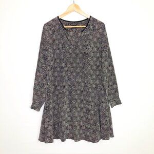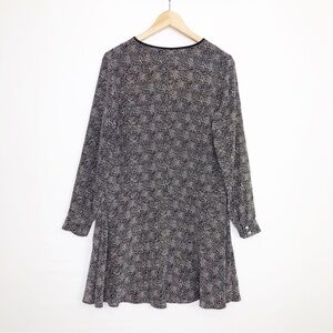 Club Monaco, silk printed mini dress with the neckline and pockets