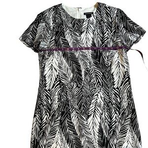 Club Monaco squelah palm leaves Floral Black White Silk Short Sleeve Dress Sz 0
