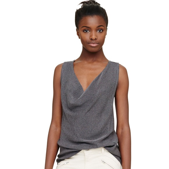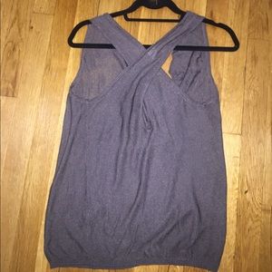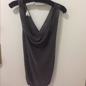 Club Monaco "alexina" sweater tank in dark grey. Cowl neck and cross-back detail. Super flattering fit.