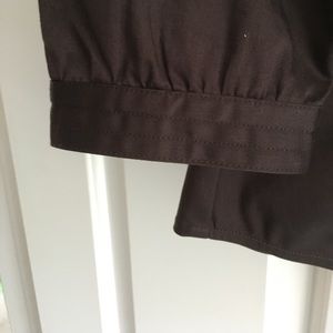 Club Monaco ruched front button down. Mandarin notch collar, 3 quarter sleeves. Chocolate brown, matte cotton with 4% spandex for a bit of stretch. Very flattering. Great for work or casual. Excellent condition--only worn a few times.