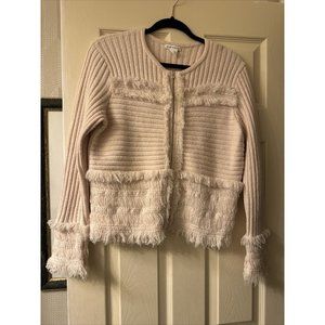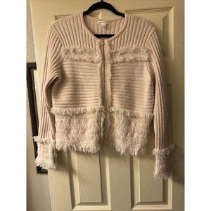 Club Monaco wool sweater fringe cream Zip size large