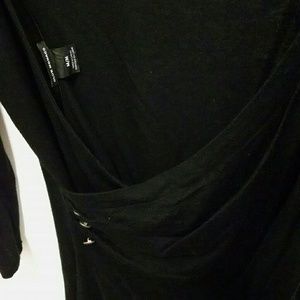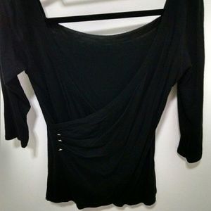 Wrap back top with button detail on back, very sexy top! 3/4 sleeves, thin fabric, boat neck line