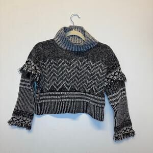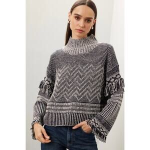 Fun fringe details give blanket-like comfort to this chic sweater by Club Monaco. Style this movement-friendly top with a wide-brimmed hat for a weekend filled with outdoor fall activities.
